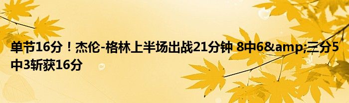 上半場比賽中,杰倫-格林出戰(zhàn)20分31秒,投籃8中6,三分5中3,罰球1中1,斬獲16分1籃板2助攻1搶斷1蓋帽。