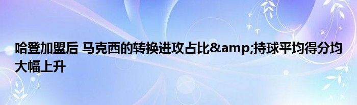 在哈登加盟后的兩場比賽中,馬克西場均得到24.5分,命中率66%,相比其賽季平均數據17.2分、44.7%命中率均有明顯提升。
