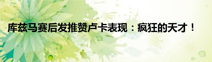 賽后前湖人球員、奇才前鋒庫茲馬發推稱贊了盧卡的表現:“瘋狂的天才!”