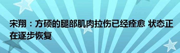 根據《北京青年報》記者宋翔的報道,方碩的腿部肌肉拉傷已經痊愈,狀態正在逐步恢復。