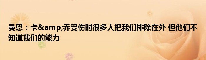 對(duì)此,曼恩表示:“這說(shuō)明了我們這個(gè)團(tuán)隊(duì)有多棒,當(dāng)小卡和喬治受傷時(shí),很多人都把我們排除在了競(jìng)爭(zhēng)的行列外,但那些人根本不知道我們的能力。”