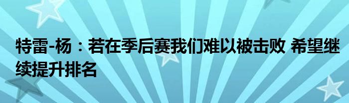 賽后老鷹球星特雷-楊談到了球隊季后賽的形勢,他說:“如果在一輪系列賽中讓我們對陣任何一支球隊時我覺得我們難以被擊敗,如果我們能夠認真研究對手時,我相信我們不會輕易出局。”