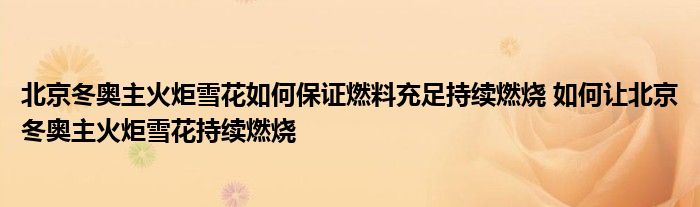 大家好,小美來為大家解答以上問題。北京冬奧主火炬雪花如何保證燃料充足持續燃燒,如何讓北京冬奧主火炬雪花持續燃燒很多人還不知道,現在讓我們一起來看看吧!