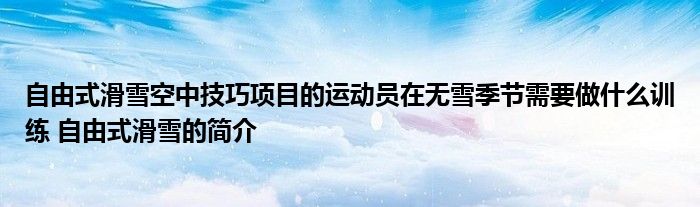 大家好,小美來為大家解答以上問題。自由式滑雪空中技巧項目的運動員在無雪季節需要做什么訓練,自由式滑雪的簡介很多人還不知道,現在讓我們一起來看看吧!