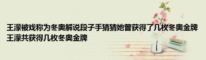 大家好,小美來為大家解答以上問題。王濛被戲稱為冬奧解說段子手猜猜她曾獲得了幾枚冬奧金牌,王濛共獲得幾枚冬奧金牌很多人還不知道,現在讓我們一起來看看吧!