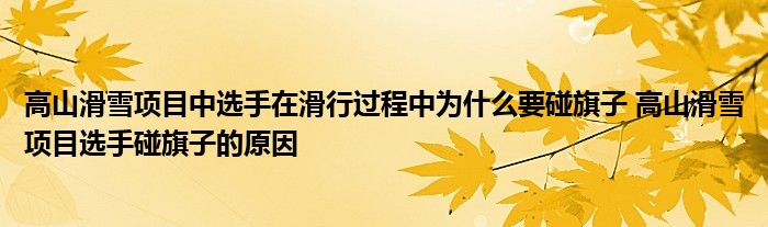 大家好,小美來為大家解答以上問題。高山滑雪項目中選手在滑行過程中為什么要碰旗子,高山滑雪項目選手碰旗子的原因很多人還不知道,現在讓我們一起來看看吧!