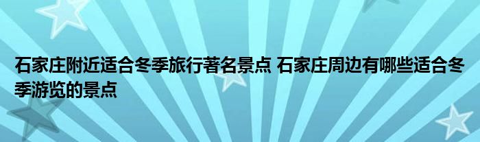 大家好,小柏來為大家解答以上問題。石家莊附近適合冬季旅行著名景點,石家莊周邊有哪些適合冬季游覽的景點很多人還不知道,現在讓我們一起來看看吧!