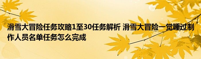 大家好,小柏來(lái)為大家解答以上問(wèn)題?;┐竺半U(xiǎn)任務(wù)攻略1至30任務(wù)解析,滑雪大冒險(xiǎn)一覺(jué)睡過(guò)制作人員名單任務(wù)怎么完成很多人還不知道,現(xiàn)在讓我們一起來(lái)看看吧!