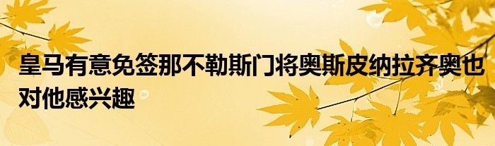 《晚郵報》透露,拉齊奧正在關注奧斯皮納,主帥薩里很欣賞他的腳下技術,而且拉齊奧門將斯特拉科沙準備在今夏離隊,薩里希望引進奧斯皮納作為替代者。不過皇馬同樣有意奧斯皮納,并想要免簽這位老門將,讓他在下賽季擔任庫爾圖瓦的替補。