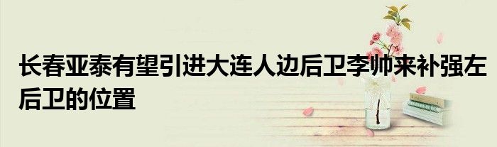 《足球報》表示,長春亞泰有望引進大連人邊后衛李帥,來補強左后衛的位置。