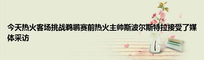 今天熱火客場挑戰鵜鶘,賽前熱火主帥斯波爾斯特拉接受了媒體采訪。