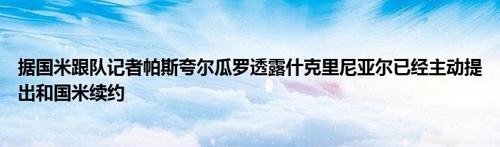 據國米跟隊記者帕斯夸爾-瓜羅透露,什克里尼亞爾已經主動提出和國米續約。