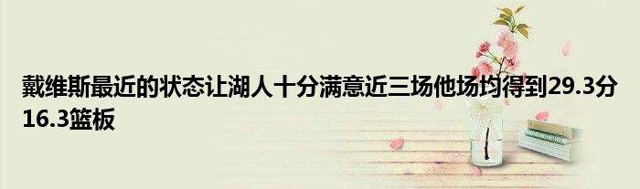戴維斯最近的狀態讓湖人十分滿意,近三場他場均得到29.3分16.3籃板,統治力驚人。本場開局他也打出了內線牽制力,為湖人創造出連續三分的機會,助攻勒布朗和阿里扎都飆進三分。