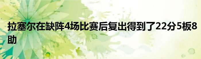今天,森林狼戰(zhàn)勝了活塞。拉塞爾在缺陣4場比賽后復出,得到了22分5板8助。