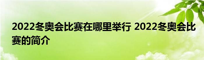 大家好,小美來為大家解答以上問題。2022冬奧會比賽在哪里舉行,2022冬奧會比賽的簡介很多人還不知道,現在讓我們一起來看看吧!