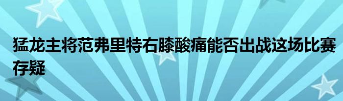 猛龍隊今日將客場挑戰熱火隊,猛龍主將范弗里特右膝酸痛,能否出戰這場比賽存疑。