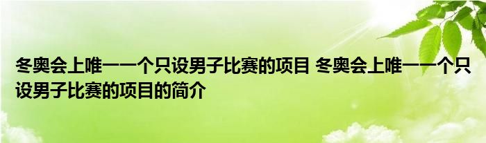 大家好,小美來為大家解答以上問題。冬奧會上唯一一個只設男子比賽的項目,冬奧會上唯一一個只設男子比賽的項目的簡介很多人還不知道,現在讓我們一起來看看吧!
