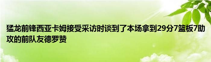 猛龍隊今日105-110不敵公牛,賽后,猛龍前鋒西亞卡姆接受采訪時談到了本場拿到29分7籃板7助攻的前隊友德羅贊。