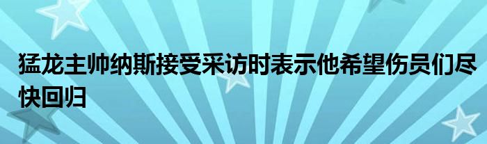 猛龍今日將與公牛交手,賽前,猛龍主帥納斯接受采訪時表示,他希望傷員們盡快回歸,這樣球隊可以加強輪轉。