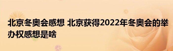 大家好,小美來為大家解答以上問題。北京冬奧會感想,北京獲得2022年冬奧會的舉辦權感想是啥很多人還不知道,現在讓我們一起來看看吧!