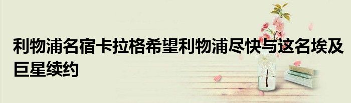 利物浦名宿卡拉格日前在天空體育節目中談到薩拉赫,他希望利物浦盡快與這名埃及巨星續約。