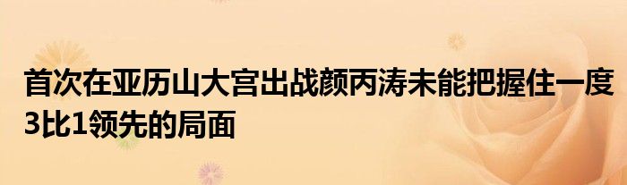 首次在亞歷山大宮出戰,面對全場球迷“包圍”下的熱烈氛圍,顏丙濤未能把握住一度3-1領先的局面,被馬克-威廉姆斯6-4逆轉。衛冕戰一輪游,顏丙濤坦言自己的壓力很大,但還是強調自己打的很不錯,甚至是本賽季發揮最好的一場。
