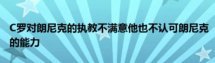 朗尼克目前是曼聯的臨時主帥。按照計劃,他將執教到本賽季結束,然后轉任技術顧問,但也有消息稱朗尼克打算在下賽季繼續執教。《每日星報》強調C羅不認可朗尼克,他將自己的這個想法告訴了曼聯高層,反對朗尼克在今夏轉正。近日,多家英媒體都稱朗尼克麾下的曼聯危機四伏,更衣室內問題較多。