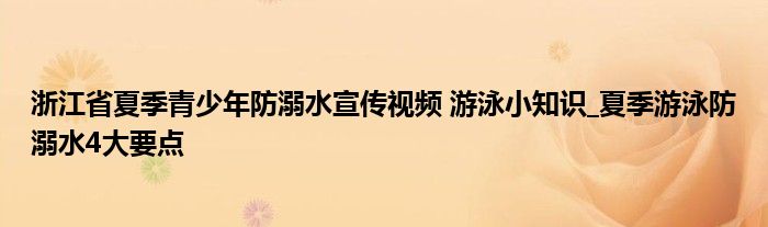 大家好,小柏來為大家解答以上問題。浙江省夏季青少年防溺水宣傳視頻,游泳小知識_夏季游泳防溺水4大要點很多人還不知道,現在讓我們一起來看看吧!