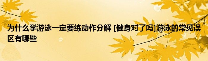 大家好,小柏來為大家解答以上問題。為什么學(xué)游泳一定要練動作分解,[健身對了嗎]游泳的常見誤區(qū)有哪些很多人還不知道,現(xiàn)在讓我們一起來看看吧!