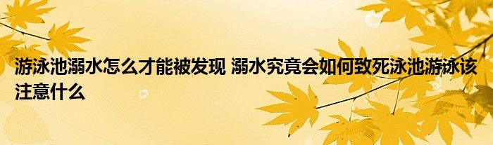大家好,小柏來為大家解答以上問題。游泳池溺水怎么才能被發現,溺水究竟會如何致死泳池游泳該注意什么很多人還不知道,現在讓我們一起來看看吧!