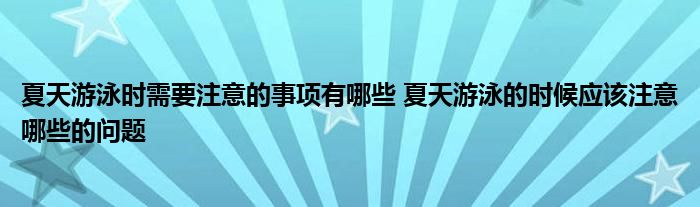 大家好,小柏來為大家解答以上問題。夏天游泳時需要注意的事項有哪些,夏天游泳的時候應該注意哪些的問題很多人還不知道,現在讓我們一起來看看吧!