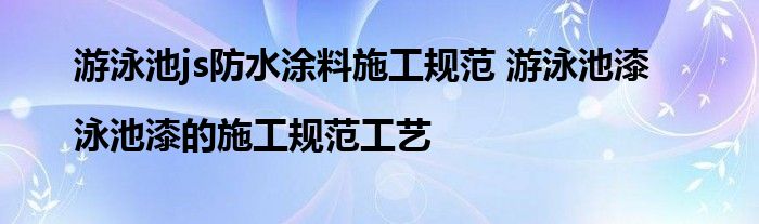 大家好,小柏來為大家解答以上問題。游泳池js防水涂料施工規范,游泳池漆|泳池漆的施工規范工藝很多人還不知道,現在讓我們一起來看看吧!