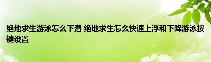 大家好,小柏來為大家解答以上問題。絕地求生游泳怎么下潛,絕地求生怎么快速上浮和下降游泳按鍵設置很多人還不知道,現在讓我們一起來看看吧!