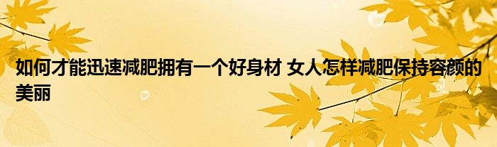大家好,小柏來為大家解答以上問題。如何才能迅速減肥擁有一個好身材,女人怎樣減肥保持容顏的美麗很多人還不知道,現在讓我們一起來看看吧!