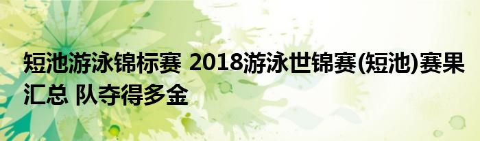 大家好,小柏來為大家解答以上問題。短池游泳錦標(biāo)賽,2018游泳世錦賽(短池)賽果匯總 隊(duì)奪得多金很多人還不知道,現(xiàn)在讓我們一起來看看吧!