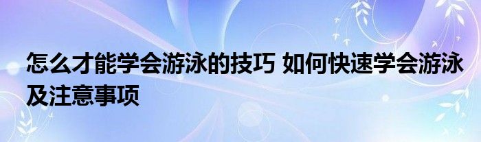 大家好,小柏來為大家解答以上問題。怎么才能學會游泳的技巧,如何快速學會游泳及注意事項很多人還不知道,現在讓我們一起來看看吧!