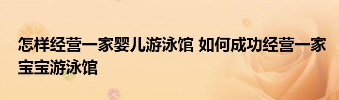 大家好,小柏來為大家解答以上問題。怎樣經營一家嬰兒游泳館,如何成功經營一家寶寶游泳館很多人還不知道,現在讓我們一起來看看吧!