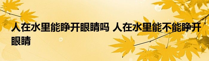 大家好,小美來為大家解答以上問題。人在水里能睜開眼睛嗎,人在水里能不能睜開眼睛很多人還不知道,現在讓我們一起來看看吧!