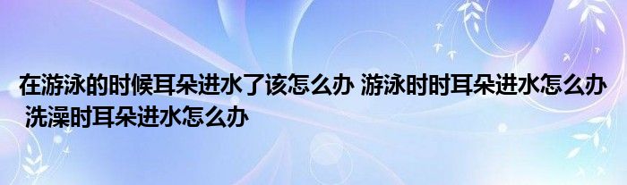 大家好,小柏來為大家解答以上問題。在游泳的時候耳朵進水了該怎么辦,游泳時時耳朵進水怎么辦 洗澡時耳朵進水怎么辦很多人還不知道,現在讓我們一起來看看吧!