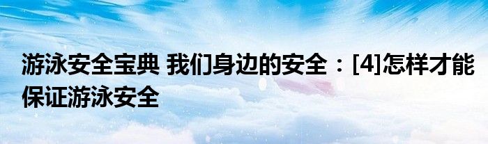 大家好,小柏來為大家解答以上問題。游泳安全寶典,我們身邊的安全:[4]怎樣才能保證游泳安全很多人還不知道,現在讓我們一起來看看吧!