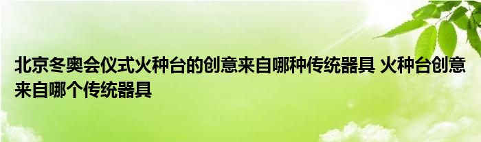 大家好,小美來(lái)為大家解答以上問(wèn)題。北京冬奧會(huì)儀式火種臺(tái)的創(chuàng)意來(lái)自哪種傳統(tǒng)器具,火種臺(tái)創(chuàng)意來(lái)自哪個(gè)傳統(tǒng)器具很多人還不知道,現(xiàn)在讓我們一起來(lái)看看吧!