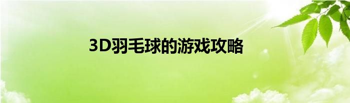 大家好,我是云百科的客服小柏,我來為大家解答以上問題。3D羽毛球的游戲攻略的很多人還不知道,那么3D羽毛球的游戲攻略的問題,我們一起來看看吧!