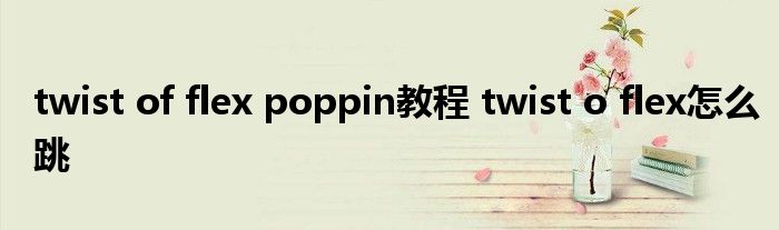 大家好,小德解答以上問題。twist of flex poppin教程,twist o flex怎么跳這個很多人還不知道,現(xiàn)在讓我們一起來看看吧!