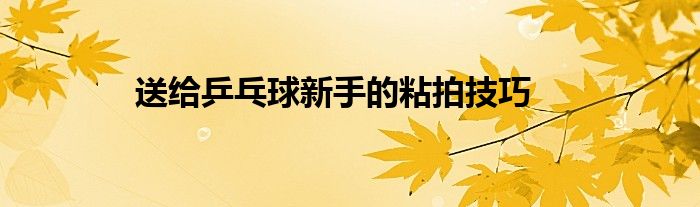 大家好,我是云百科的客服小柏,我來為大家解答以上問題。送給乒乓球新手的粘拍技巧的很多人還不知道,那么送給乒乓球新手的粘拍技巧的問題,我們一起來看看吧!
