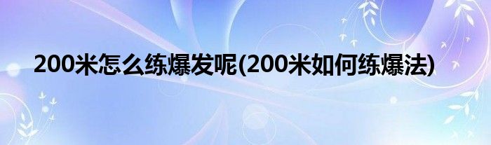 大家好,小美來為大家解答以上問題。200米怎么練爆發呢,200米怎么練爆發方法很多人還不知道,現在讓我們一起來看看吧!