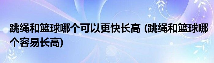 大家好,小美來為大家解答以上問題。跳繩和籃球哪個可以更快長高,跳繩和籃球哪個容易長高很多人還不知道,現在讓我們一起來看看吧!