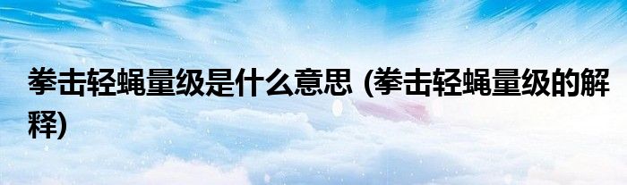 大家好,小美來為大家解答以上問題。拳擊輕蠅量級是什么意思,拳擊輕蠅量級的解釋很多人還不知道,現在讓我們一起來看看吧!