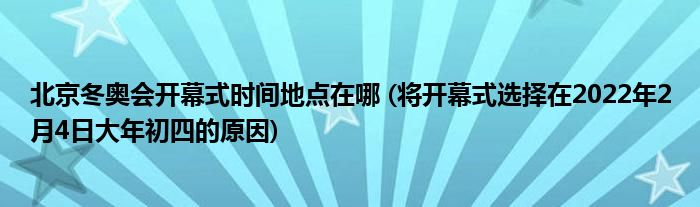 大家好,小美來(lái)為大家解答以上問(wèn)題。北京冬奧會(huì)開(kāi)幕式時(shí)間地點(diǎn)在哪,將開(kāi)幕式選擇在2022年2月4日大年初四的原因很多人還不知道,現(xiàn)在讓我們一起來(lái)看看吧!