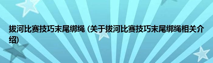 大家好,小美來為大家解答以上問題。拔河比賽技巧末尾綁繩,關于拔河比賽技巧末尾綁繩相關介紹很多人還不知道,現在讓我們一起來看看吧!