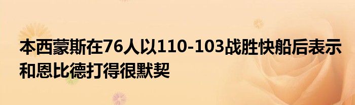 對(duì)于自己和喬爾-恩比德本場(chǎng)比賽的發(fā)揮,西蒙斯說道:“我認(rèn)為我和恩比德之間的化學(xué)反應(yīng)很不錯(cuò),我能在場(chǎng)上找到他,他在低位打得很有力量,會(huì)出現(xiàn)一些空位。我覺得今天我們?cè)阱e(cuò)位進(jìn)攻和發(fā)現(xiàn)彼此方面做得很棒。”